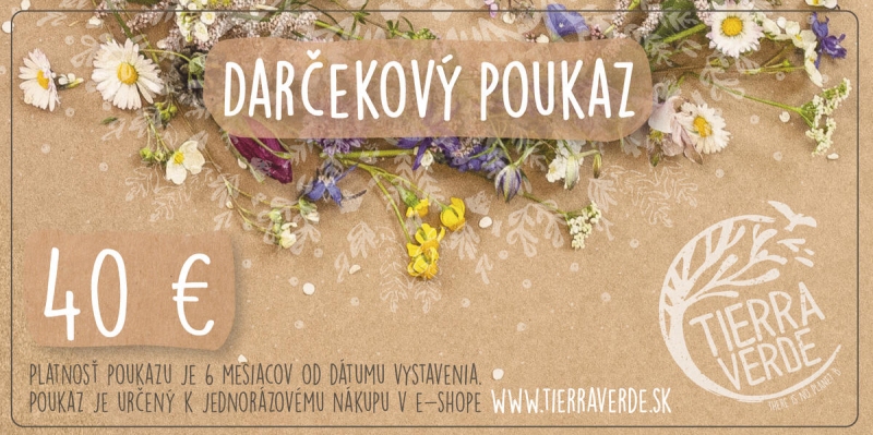 darčekový poukaz je platný v e-shope www.tierraverde.sk