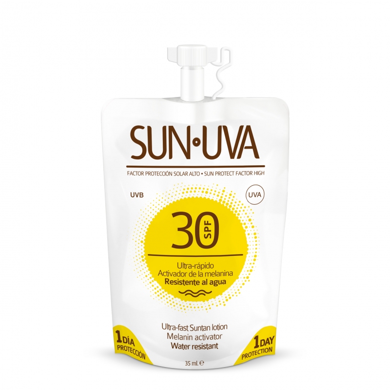 Vodeodolný opaľovací prípravok je určený na ochranu pokožky pred slnečným žiarením. Obsahuje vysoký ochranný faktor SPF 30 a urýchľovače opaľovanie, ktoré zabezpečia, že vaša pokožka bude čoskoro krásne zafarbená do prirodzene zlatistej farby. Balenie prípravku vystačí na jeden celý deň intenzívneho slnenia, je menšia, skladnejší a je z neho o 45% menej odpadu, než z klasického balenia. Vďaka tomu je možné zaobstarať si všetky tri stupne ochrany - SPF 30, 15 i 6 a odpadne tak drahé a zbytočné nakupovanie veľkých túb, ktoré nestihnete spotrebovať.